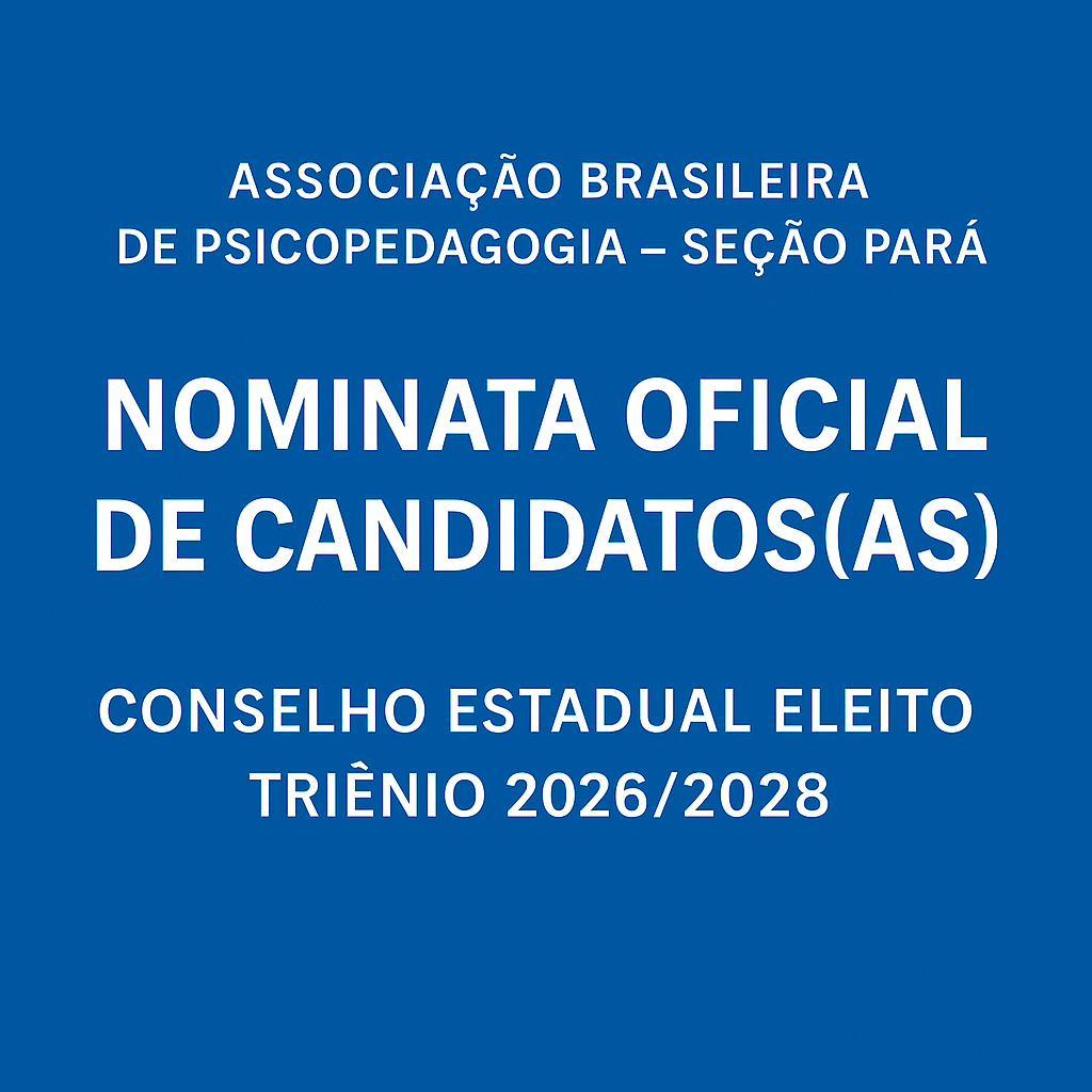 A Associação Brasileira de Psicopedagogia – Seção Pará apresenta a Nominata Oficial de Candidatos(as) ao Conselho Estadual para o triênio 2026/2028, homologada em 17/11/2025.